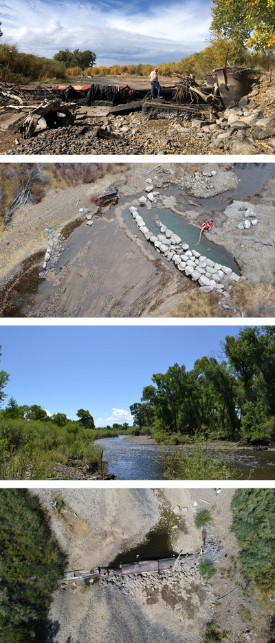 Phase 1 of the CRPP was completed in Spring 2023 and included the construction of four diversion dams, consolidation of two ditch diversions into a single point of diversion and replacement of five headgates, three of which are now automated. In addition to replacing aging infrastructure, the Project included the rectification of three fish barriers, 2,112 feet of streambank restoration, and 23.9 acres of enhanced and preserved habitat adjacent to the diversion sites.
