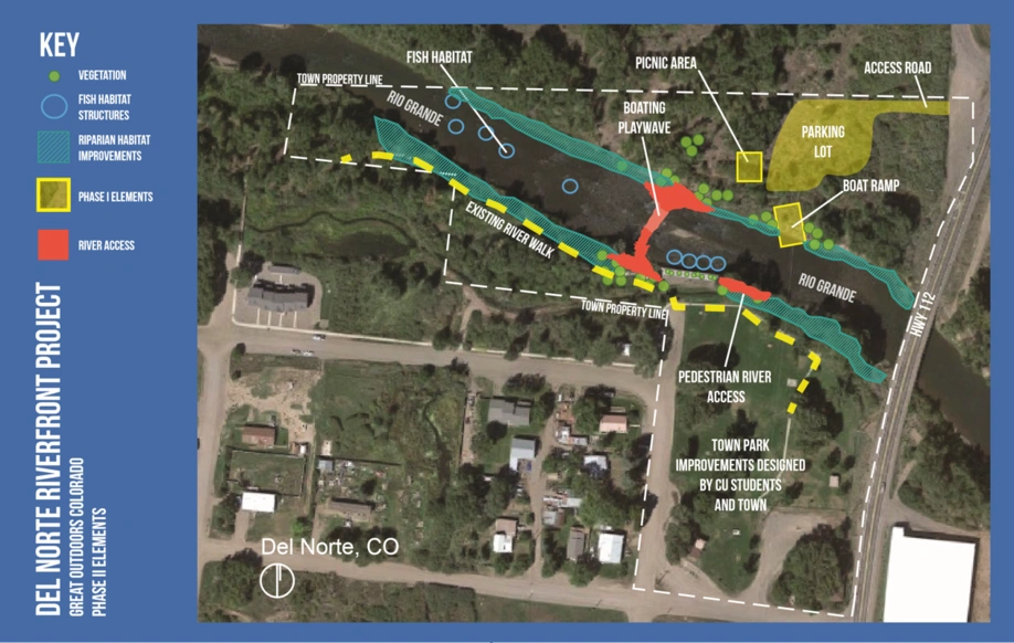 The Del Norte Riverfront Project improved recreation opportunities and access on the Rio Grande near North Park in Del Norte, creating much needed connectivity between the communities and visitors of the San Luis Valley and the river that sustains it. The Project did this while also improving the ecological condition of the riparian areas and instream habitat for fish and other wildlife.