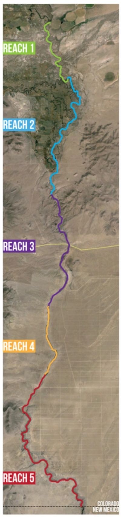 The study covers a 33-mile stretch of the Rio Grande within the Rio Grande Natural Area (RGNA). Designated in 2006, the RGNA extends from the south edge of the Alamosa National Wildlife Refuge south to the Colorado/New Mexico State Line, this reach of the Rio Grande is home to spectacular wildlife and historical resources, and remains relatively undeveloped.